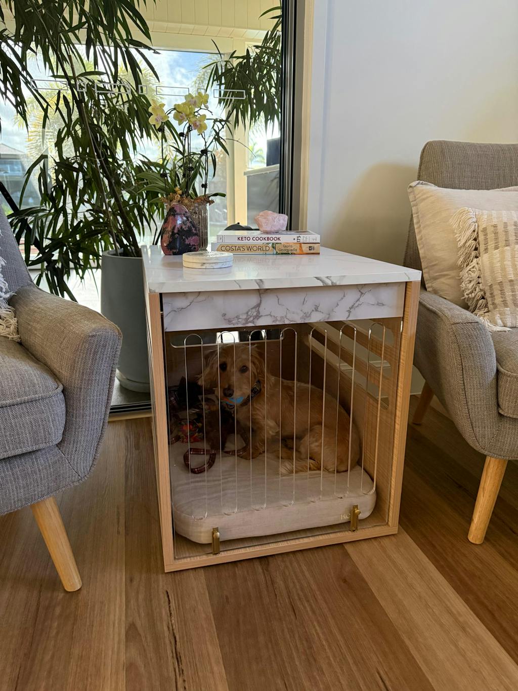 The Koozi Dog Crate furniture collection is unlike any other. Designed to provide your dog with a comfortable, secure retreat while seamlessly blending into your home interiors. Premium furniture-grade materials with unique beautiful finishes.