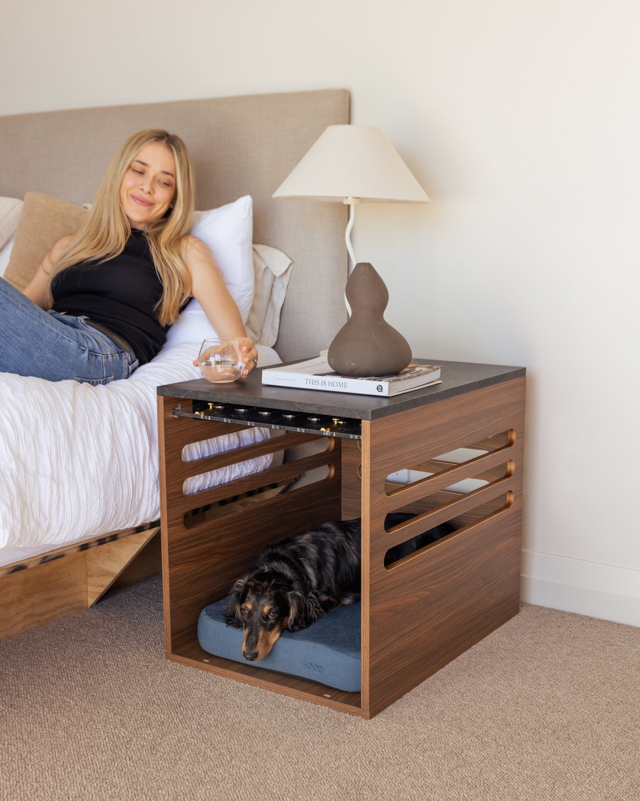The Koozi Crate is more than just a dog crate—it’s a high-quality, multifunctional furniture piece that combines a stylish side table with a comfortable retreat for your dog.
