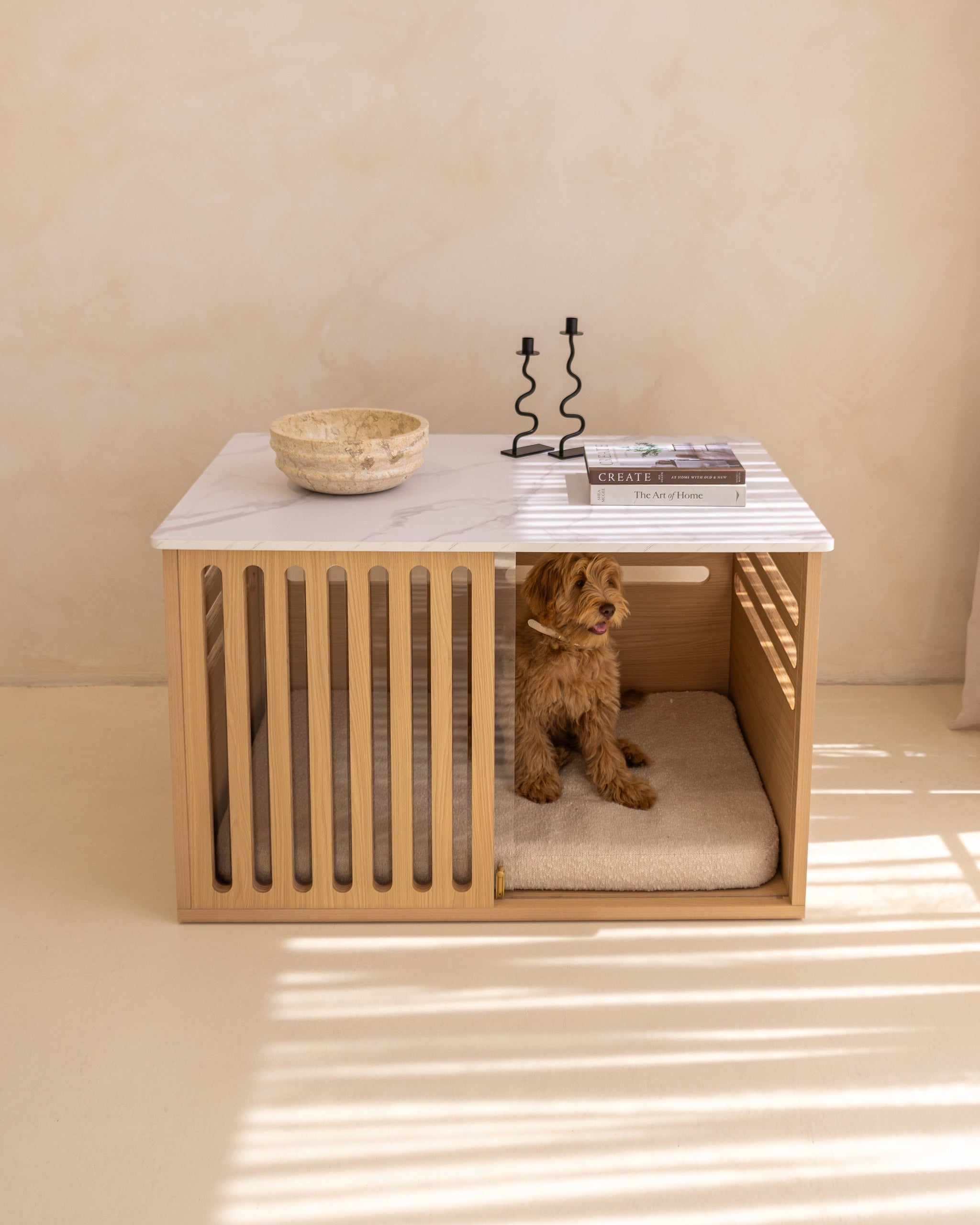 The Koozi Crate is for dog parents looking to replace mismatched crates or worn-out beds with a lasting solution that provides style, comfort and security. Designed as both a cosy, safe retreat for your dog and a stylish side table for your home, the Koozi Crate offers two essentials in one – a timeless investment you won’t want to hide away.