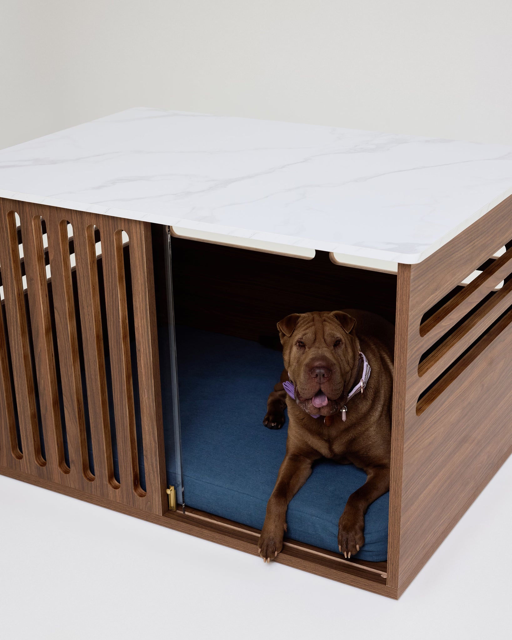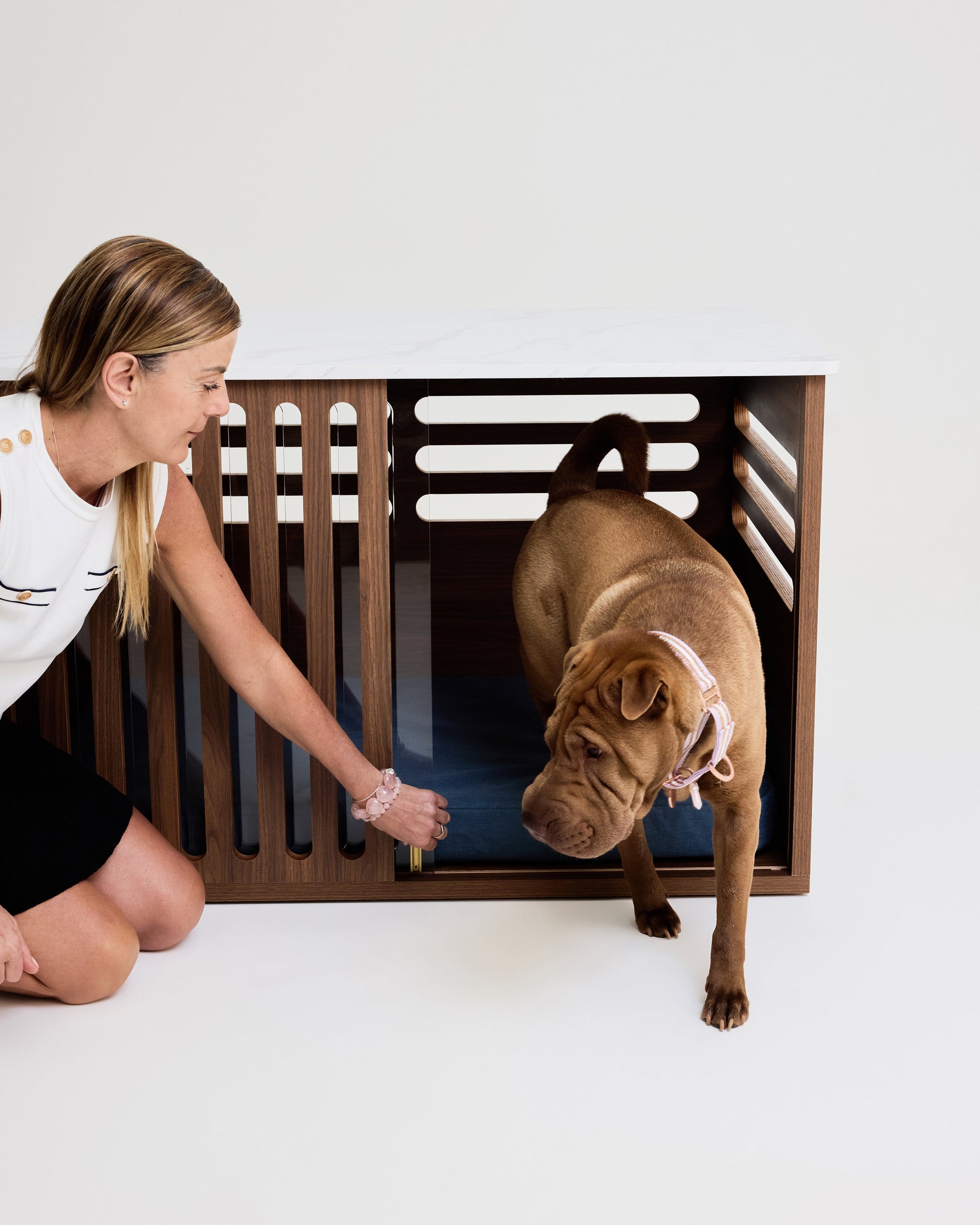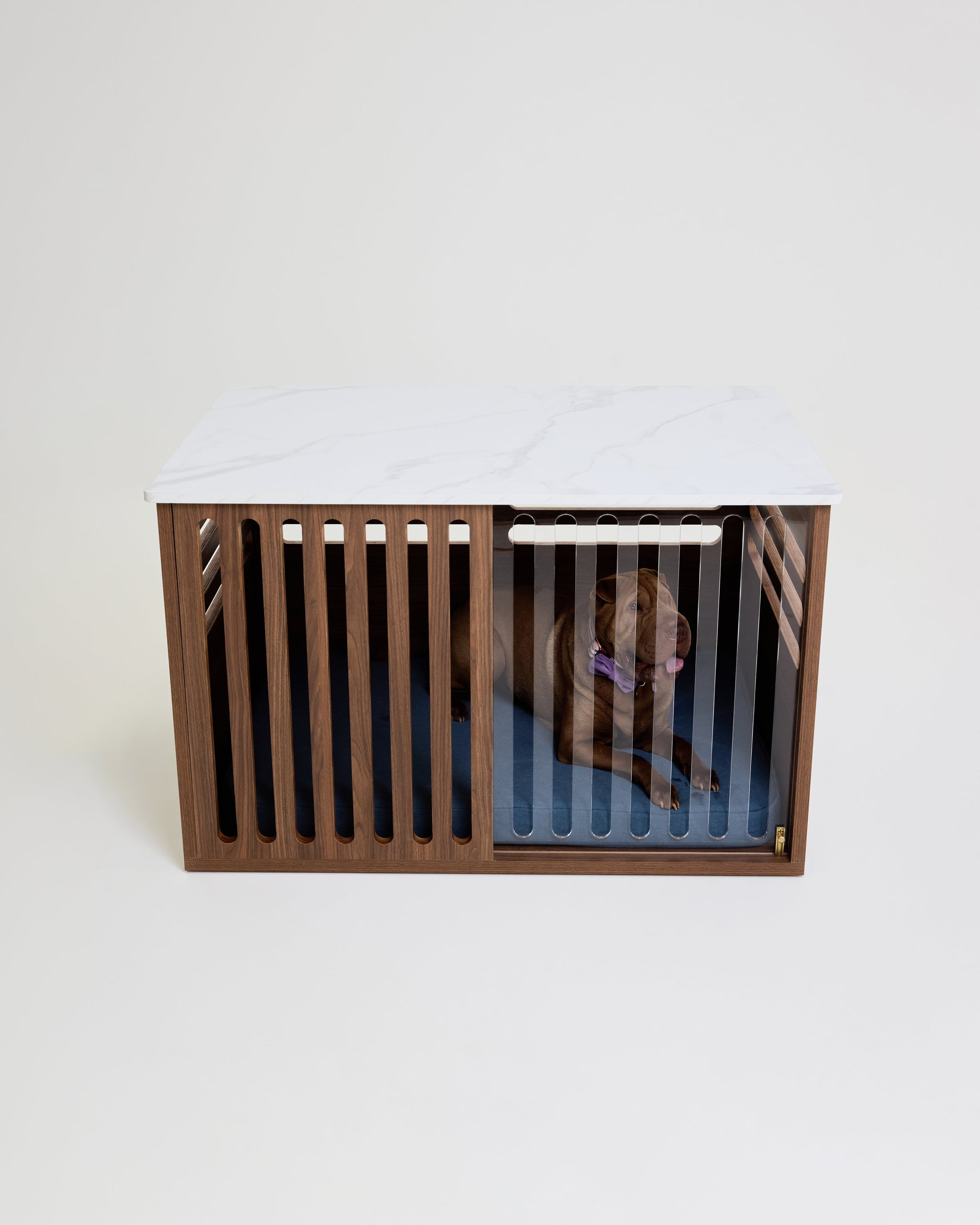 The Dog Crate, Reimagined as beautiful furniture. Your home is a sanctuary for both you and your dog - their retreat shouldn’t disrupt it. The Koozi Buffet Table Dog Crate brings design and function together in one statement furniture piece.