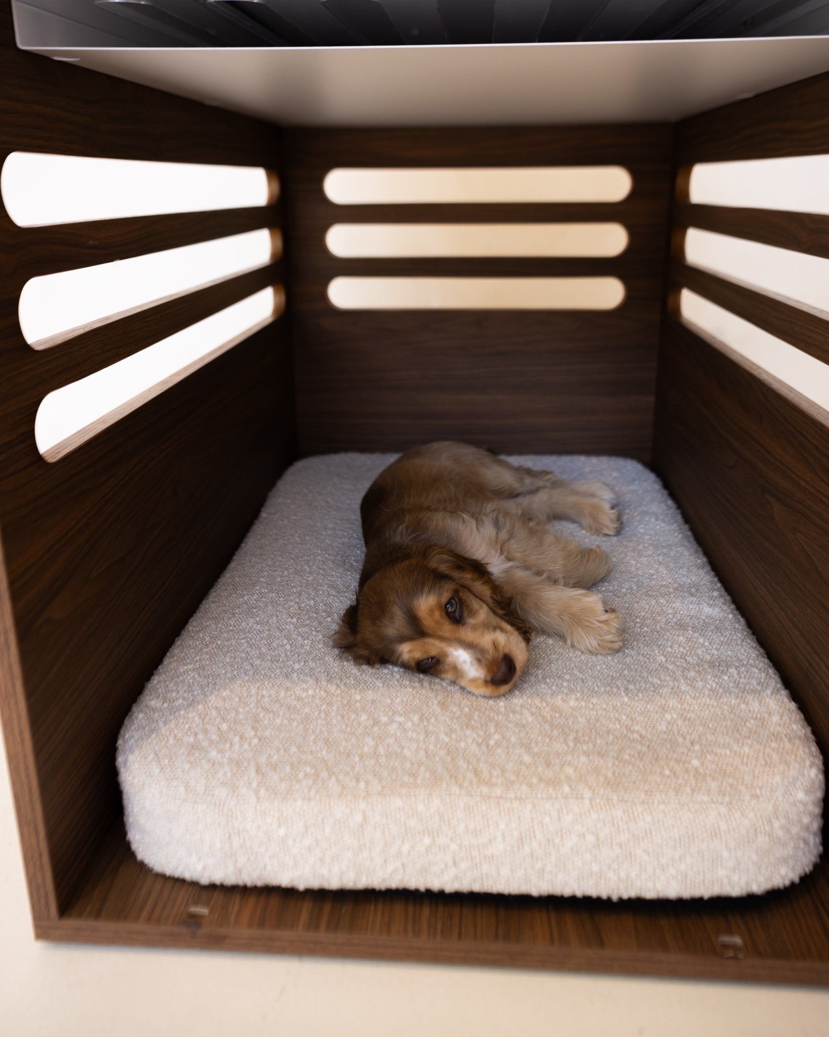 The Koozi Crate is for dog parents looking to replace mismatched crates or worn-out beds with a lasting solution that provides style, comfort and security. Designed as both a cosy, safe retreat for your dog and a stylish side table for your home, the Koozi Crate offers two essentials in one – a timeless investment you won’t want to hide away.